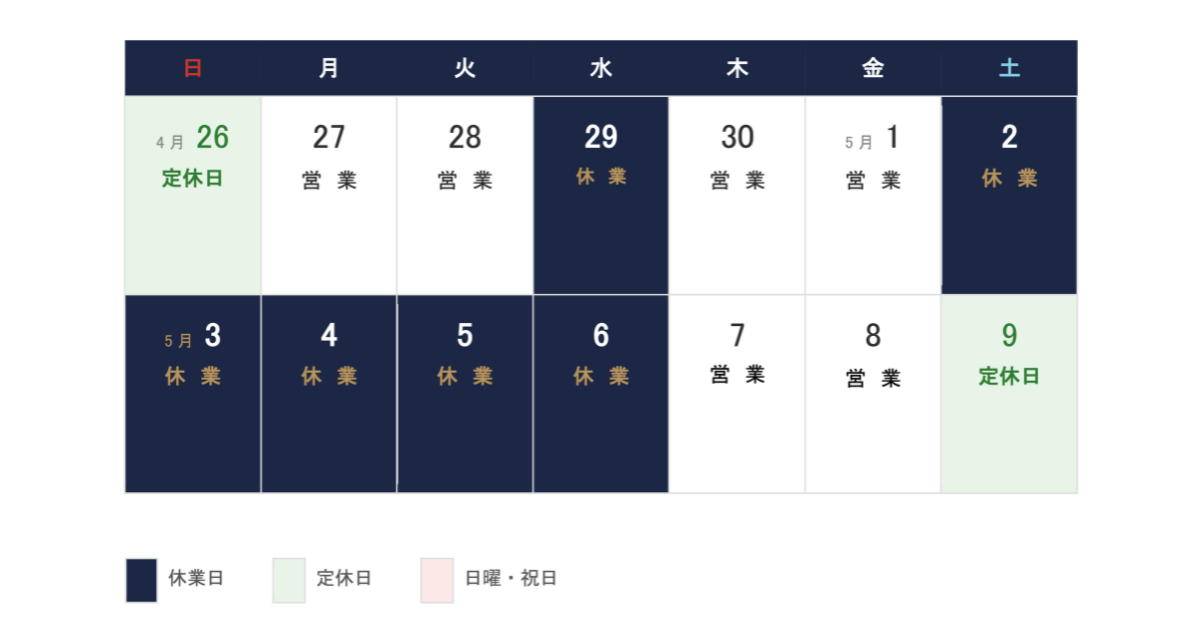 休業期間中のお問い合わせは、5月7日以降に順次ご対応いたします。